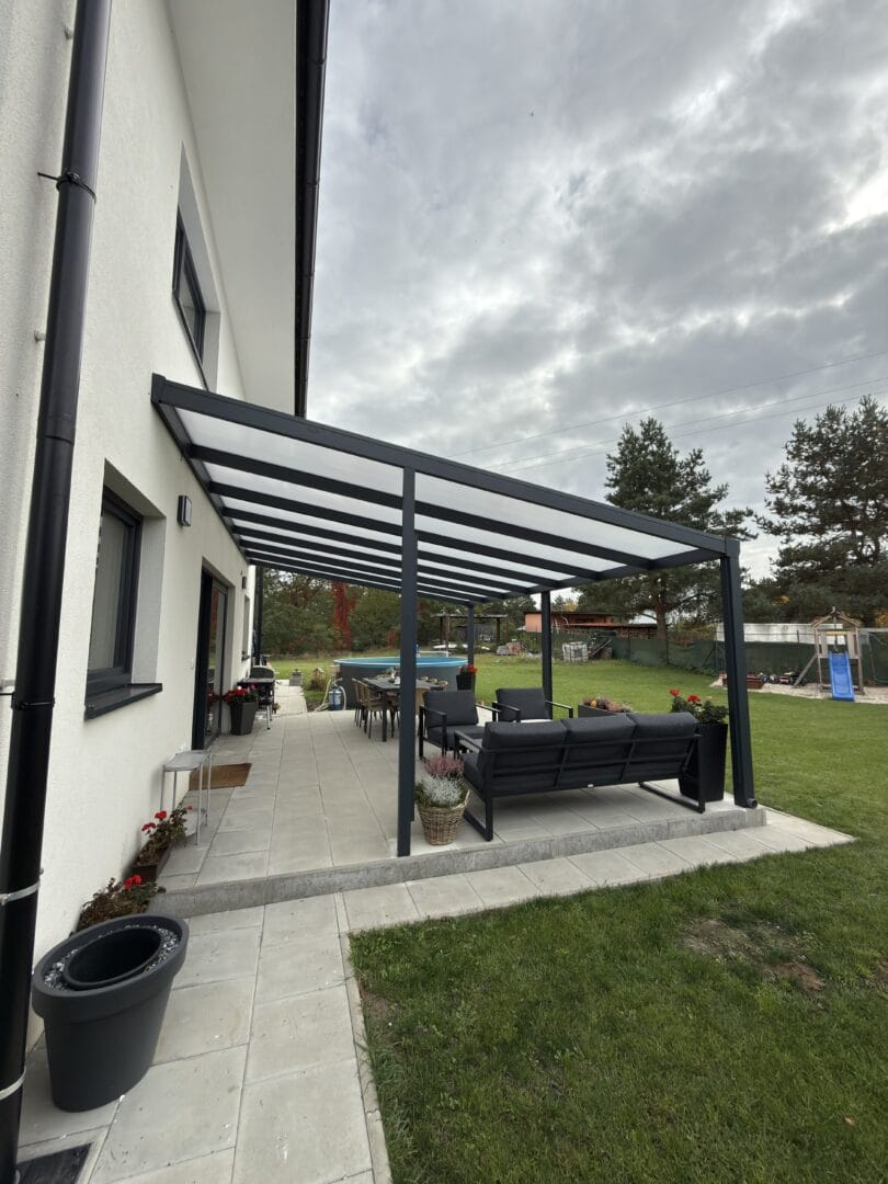 Možnost doplnění pergoly o zasklení, nebo screenové rolety